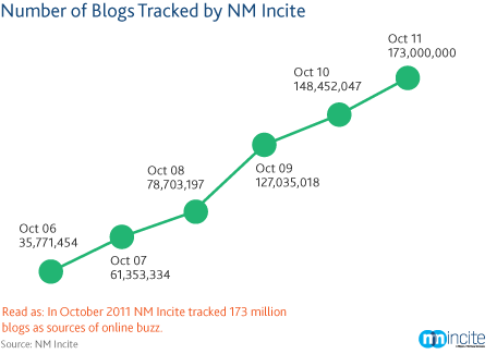 Laut Nielsen trackte die Firma “NM Incite” per Ende 2011 rund 183 Millionen Blogs, fünf Jahre zuvor, also im 2006, waren es noch 36 Millionen…