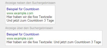 Und hier ein Beispiel von der Textanzeige mit der Countdown-Funktionen neben den Suchergebnissen und über den Suchergebnissen: