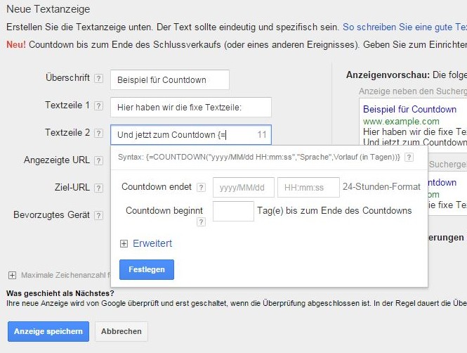 Die neue Countdown-Funktion von Google AdWords