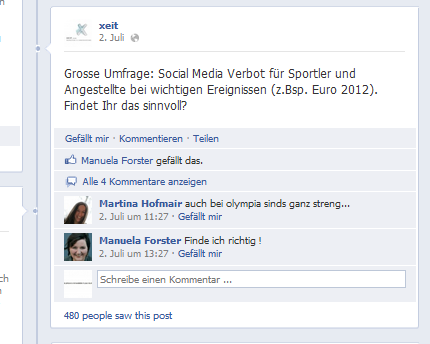Auf unserer xeit-Fanpage zum Beispiel, führen wir regelmässig Umfragen durch, um Usermeinungen zu bestimmten Themen einzuholen.