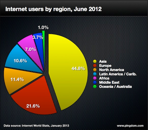 Das Internet wächst weiter. Im 2012 hat es wieder neue Rekorde gebrochen, Gewichte wurden verschoben und 44 Milliarden E-Mails wurden verschickt und das pro Tag! Es gab 2,4 Milliarden Internetnutzer wovon fast die Hälfte auch auf Facebook tätig war… Der Webanalyse-Spezialist Pingdom hat sich die Mühe gemacht, alle erdenklichen Daten über die Entwicklung des Internets im Jahr 2012 aufzubereiten und hier erfahrt ihr, was im 2012 in der Online Welt gelaufen ist: