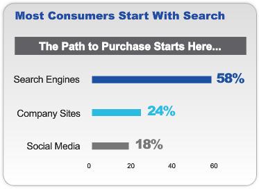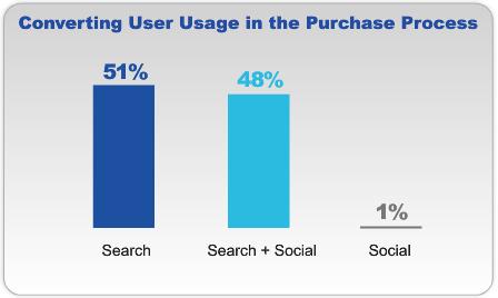 Von denjenigen, die zuerst Suchmaschinen nutzten, wandten sich 40% im nächsten Schritt an Social Media Quellen, um eine Kaufentscheidung zu treffen. Von denjenigen, die mit Social Media anfingen, suchten anschließend 46% mit Suchmaschinen weiter. (Wichtiger Hinweis am Rande: 45% nutzen Suchmaschinen während des gesamten Kaufzyklus! )