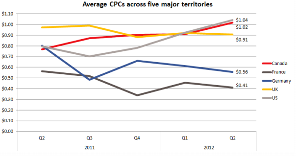 Wir haben den TBG Report für das 1. Quartal 2012 hier in einem separaten Blogpost erläutert. Zu diesem Zeitpunkt war bereits ebenfalls eine deutliche Preissteigerung des Tausenderkontaktpreises und der Klickpreise in den meisten Ländern auszumachen. Auch hier verhielt sich dieser Trend einzig in Deutschland und Frankreich gegenläufig.