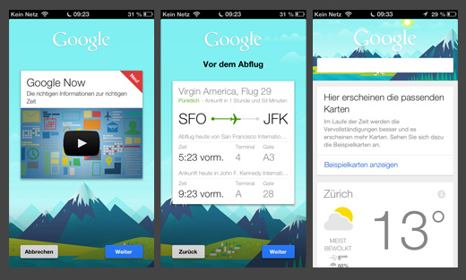 Hat man die Google Search-App für iOS bislang noch gar nicht genutzt, so kann diese kostenlos via Appstore heruntergeladen werden. Der Dienst Google Now ist hier bereits automatisch integriert. Wer die App bereits nutzt, muss lediglich ein Update durchführen.