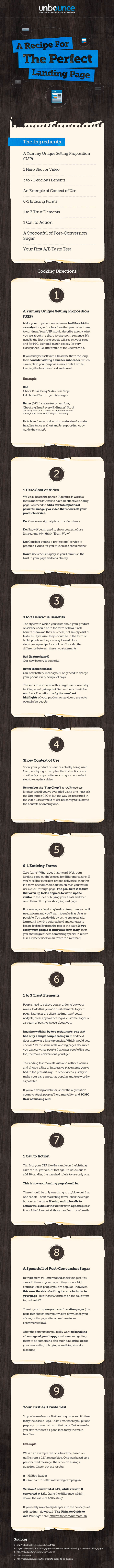Quelle: unbounce.comZiel einer Landingpage ist es nicht, einen Schönheitspreis zu gewinnen. Sie muss knallhart Geld oder zumindest erstmals Leads generieren. Eine Infografik von unbounce in Form eines Rezepts präsentiert die Zutaten für eine perfekte Landingpage.