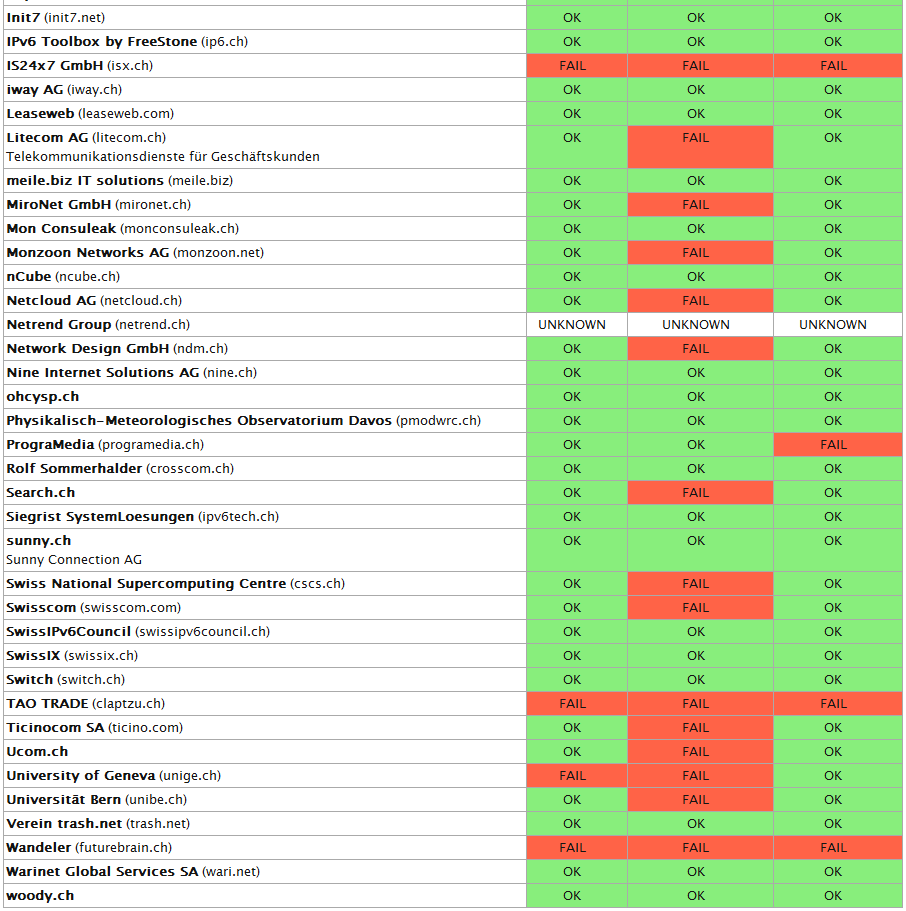 Die ganze Tabelle findet ihr unter folgender Adresse: http://dashboard.swissipv6council.ch/
