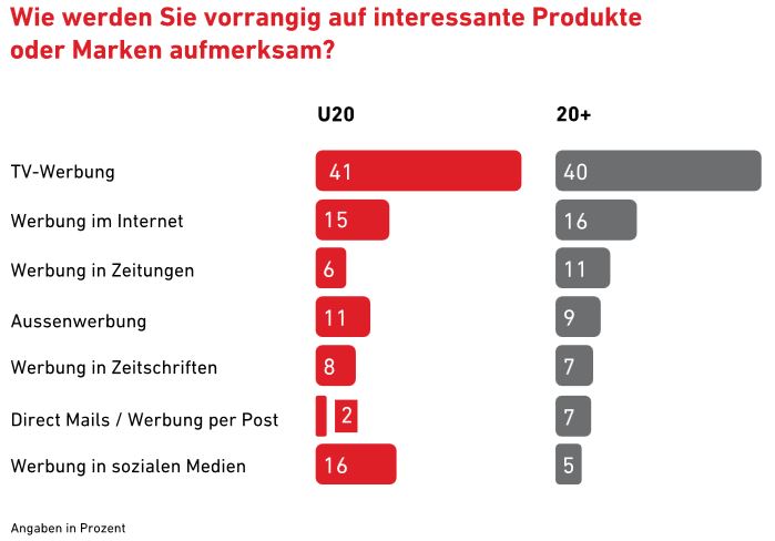 Und jetzt: wo werden Schweizer Jugendliche (U20er) am meisten auf Werbung aufmerksam?