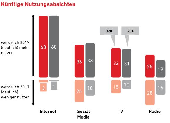 Und wie ist es mit den künftigen Mediennutzungsabsichten bei den Jugendlichen (unter 20-Jährigen)?