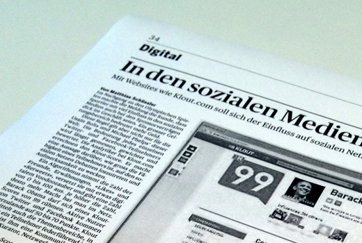 Am vergangenen Montag nahm sich Matthias Schüssler in einem Artikel im Tagesanzeiger dem Thema “Klout Score” an. Die Kernbotschaft: Die Berechnung des Kloutscore ist nicht wissenschaftlich. Und: Der gemessene Einfluss auf sozialen Netzwerken lässt sich in bares Geld ummünzen.