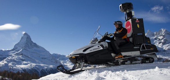 Die Fotos haben die Googler mit einem Snow Mobile geschossen, auf dass sie die berühmten Street View Kameras hinten drauf montiert haben.
