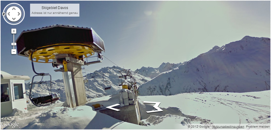 Seit letztem Monat sind die Gebiete Zermatt-Matterhorn, Davos, Gstaad, Sedrun, Arosa, St. Moritz, Corvatsch Furtschella und Les Diablerets in Googles Karten-Service „Street-View“ erfasst. Die Aufnahmen entstanden letzten Winter bei meist schönem Wetter, was wunderbare Bilder ermöglichte. Das Skigebiet Sedrun wurde an einem sehr bewölkten Tag aufgenommen, weshalb die Bilder etwas zu dunkel ausgefallen sind. Hier sind die Pisten leider nur schwer erkennbar.