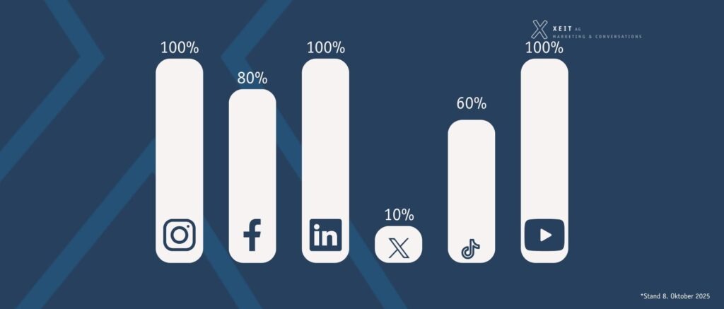 Unser Check zeigt: Die Mehrheit der untersuchten Unternehmen nutzt Social Media aktiv, allerdings mit klaren Unterschieden zwischen den Kanälen. Während einige Firmen Social Media als festen Bestandteil ihrer Kommunikationsstrategie einsetzen, bleiben andere noch zurückhaltend.