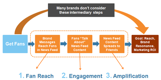 Brands müssen also in den Newsfeed ihrer Fans und in den Newsfeed derer Freunde kommen! Diesen wichtige Punkt dürften noch immer viele Marken missachten. Die nachfolgende Grafik illustriert diesen Umstand schön: