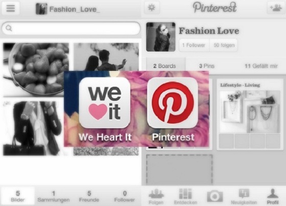 We Heart it heisst auf Deutsch übersetzt „Wir Herzen es“. Diese Anwendung ist Pinterest sehr ähnlich. Es ist eine Online-Foto Galerie, welche man mit Freunden teilen kann. Gefällt einem ein Bild „herzt“ man es und es erscheint auf dem eigenen Profil in der „Galerie“. Möchte man es nicht mehr, klickt man nochmals auf das Herz und schon ist es von der eigenen Seite verschwunden. Um die vielen Bilder besser ordnen zu können, gibt es die Möglichkeit thematische Ordner anlegen, z.B. einen für Fashion, Hairstyles, Love, Holidays… Das ist ähnlich wie bei Pinterest, wo man verschiedene Pinnwände anlegen kann. Klar können eigene Fotos gepinnt und verteilt werden… Aber bei diesen beiden Netzwerken geht es in erster Linie darum, „schöne“ Bilder an einem Ort zu sammeln, welche nicht die eigenen sein müssen.