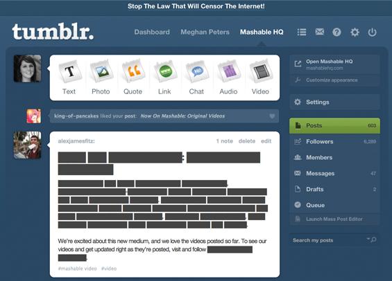 Auf der Webseite kann sich jeder einen HTML-Code zur Zensur seines eigenen Logos besorgen. Tumblr hat vorab schon mal veranschaulicht, wie ein Blog aussehen könnte, wenn das Gesetz verabschiedet wird.